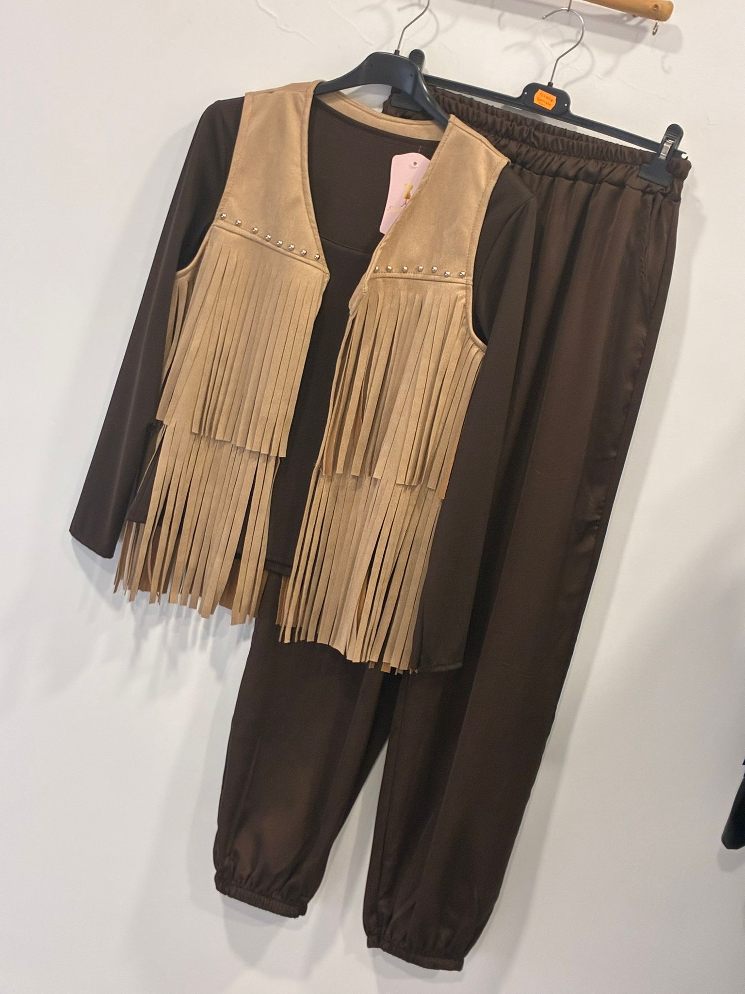 Chaleco de flecos en Antelina con tachuelas, talla única.