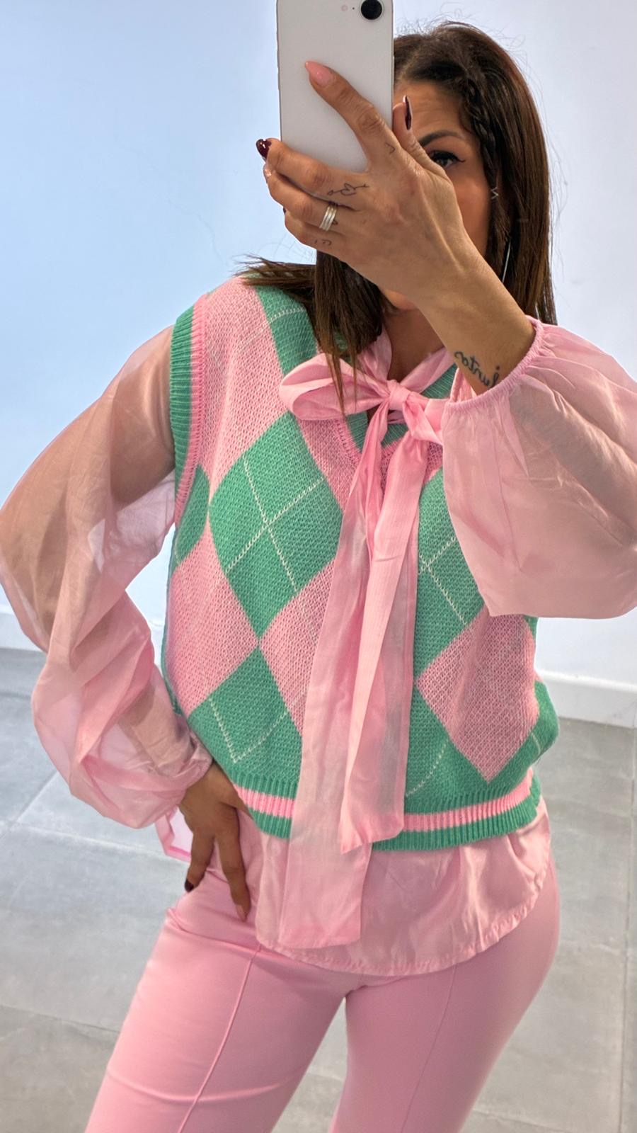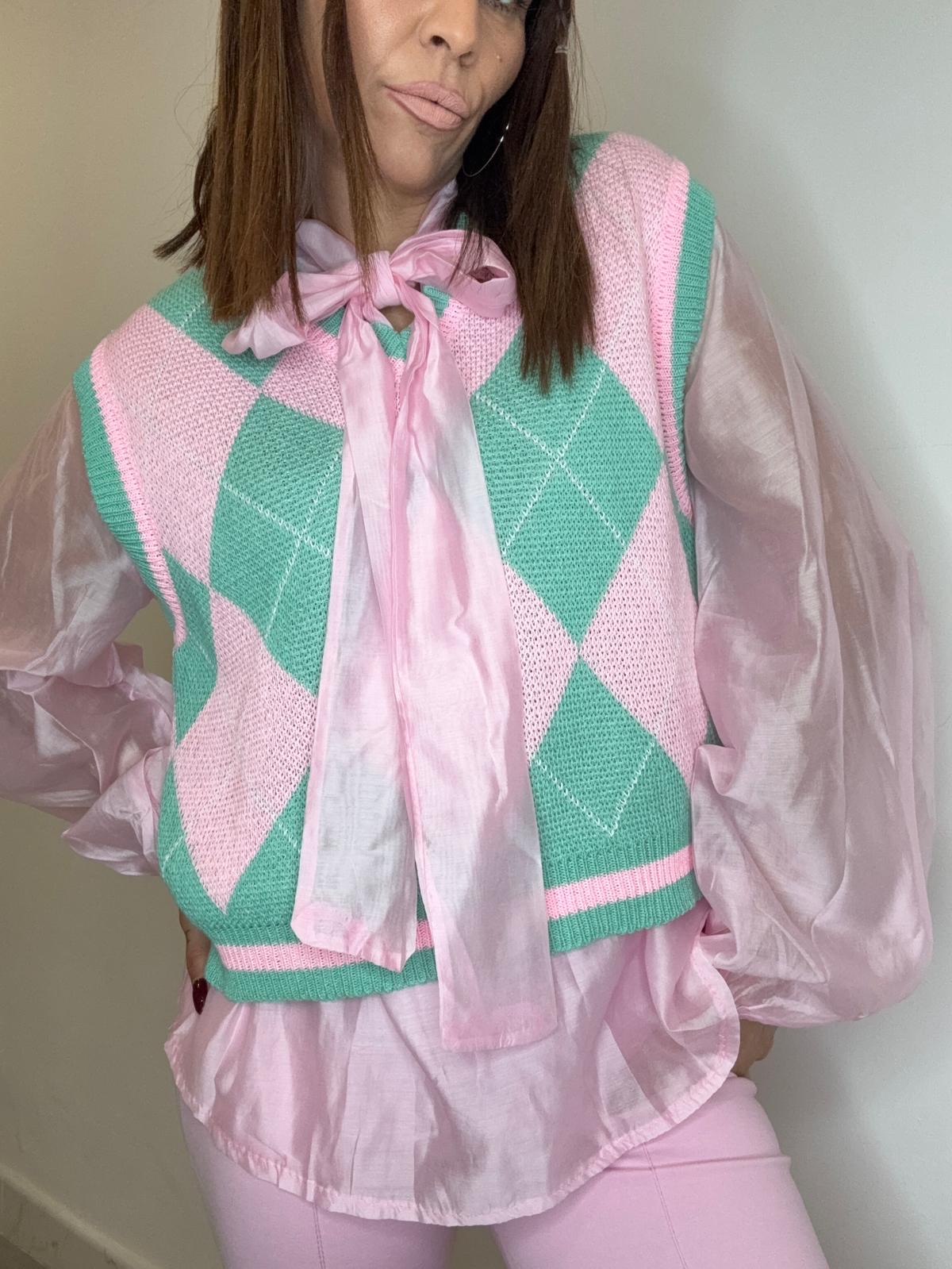 Chaleco de punto con dibujo de rombos combinado! Talla única combínalo con nuestra camisa romántic