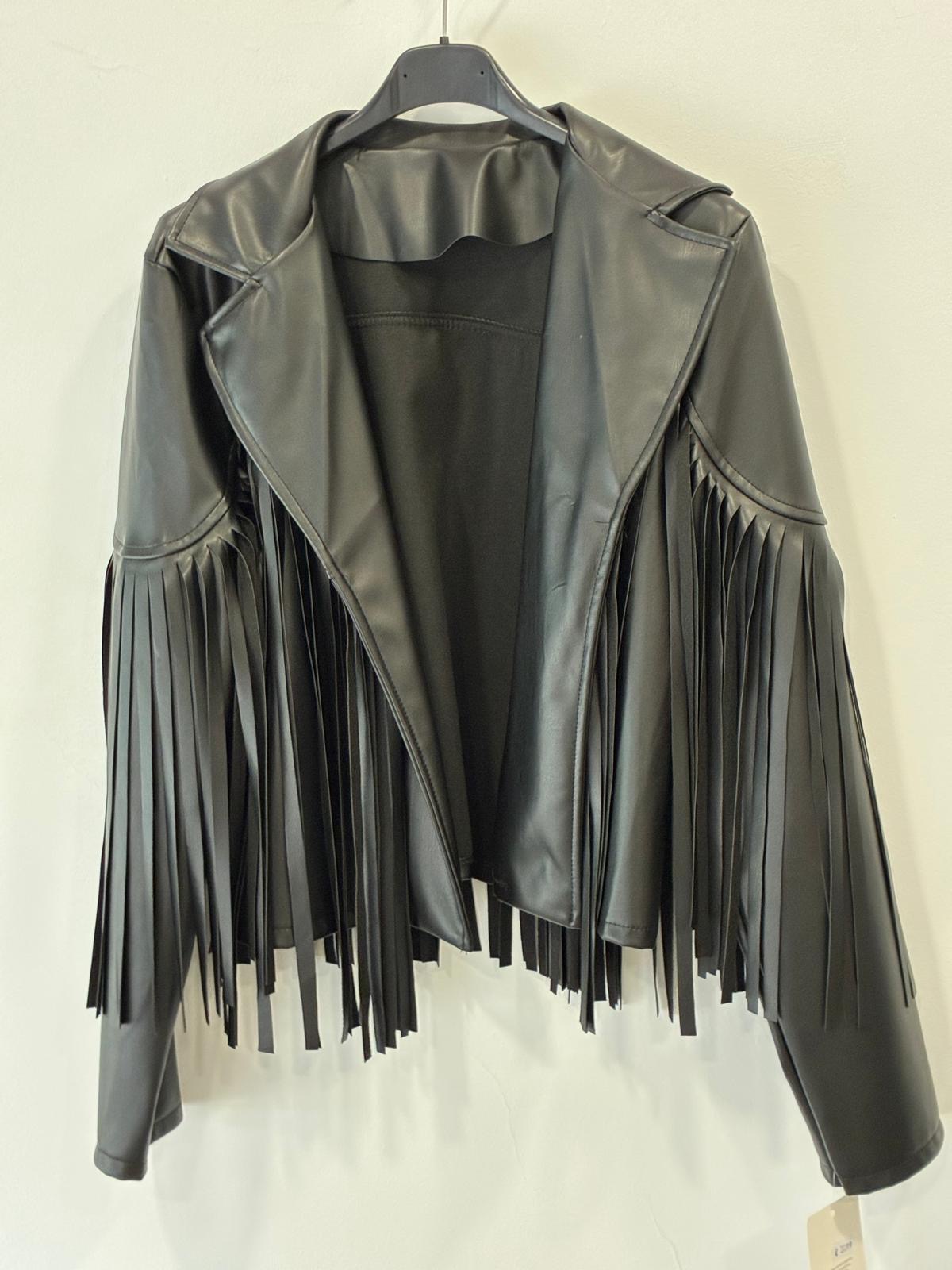 Cazadora polipiel negra con flecos! Talla única!