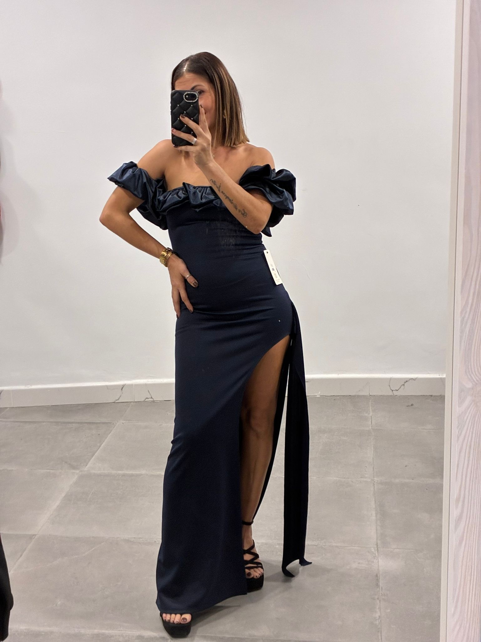 Vestido crepe combinado con satén! Azul marino, talla única! Para S y M