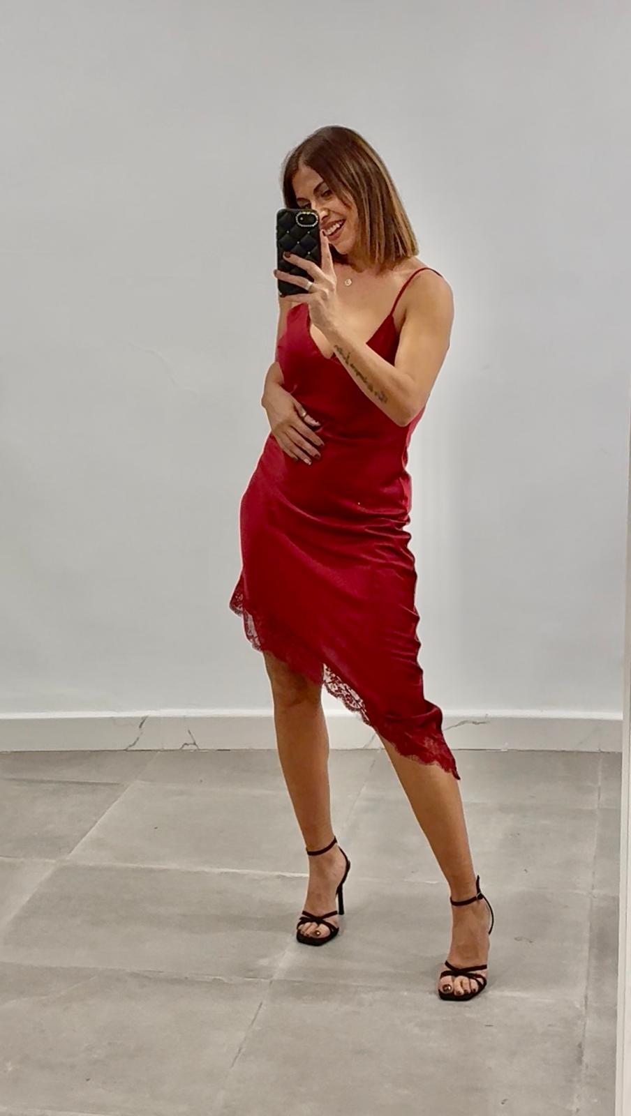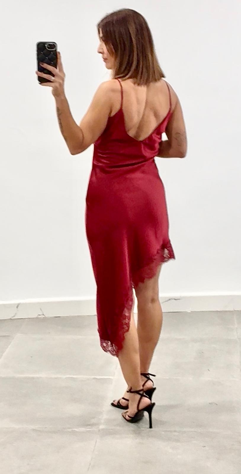 Vestido satén asimétrico con encaje, talla única! Da hasta la 40