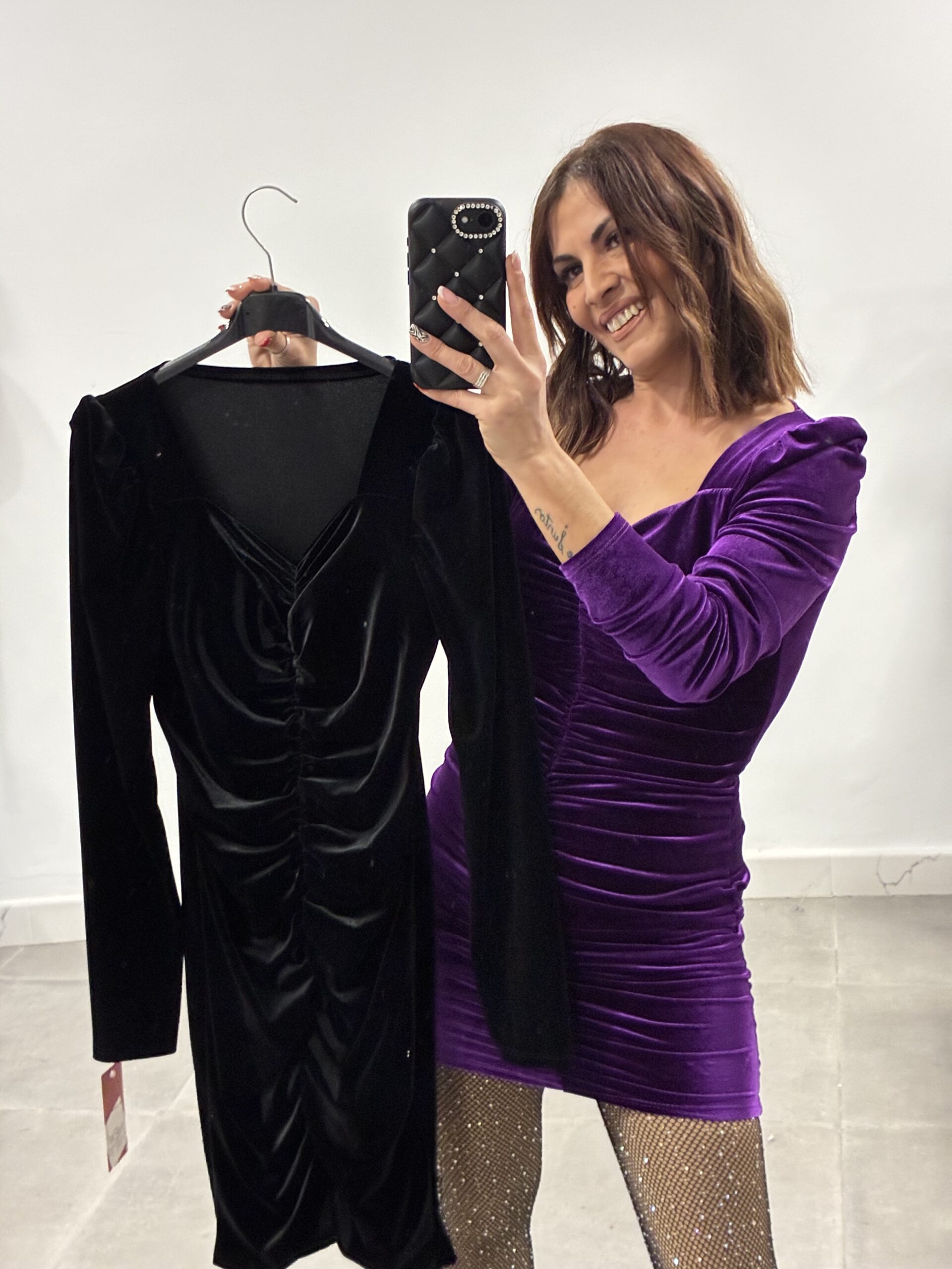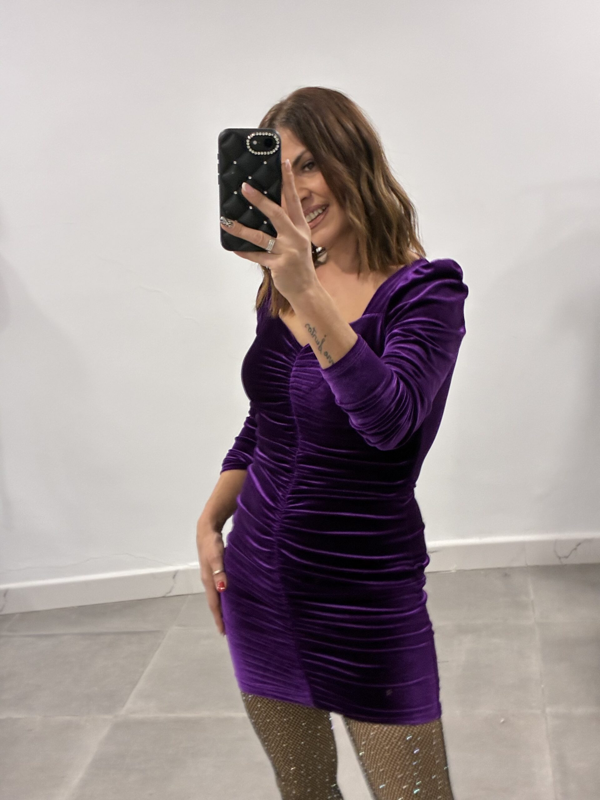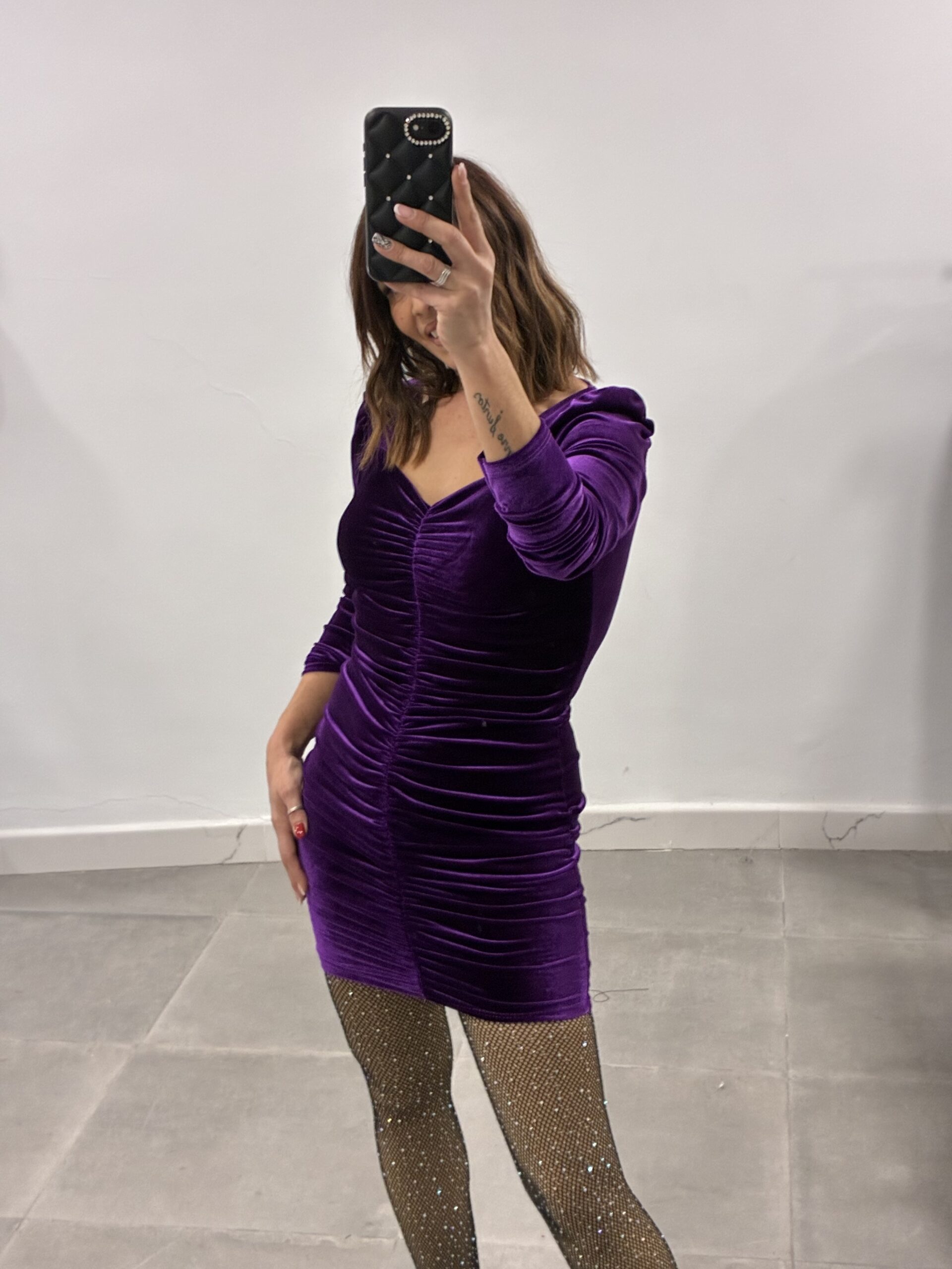 Vestido fruncido de terciopelo con cascos! Talla única! Da hasta la L